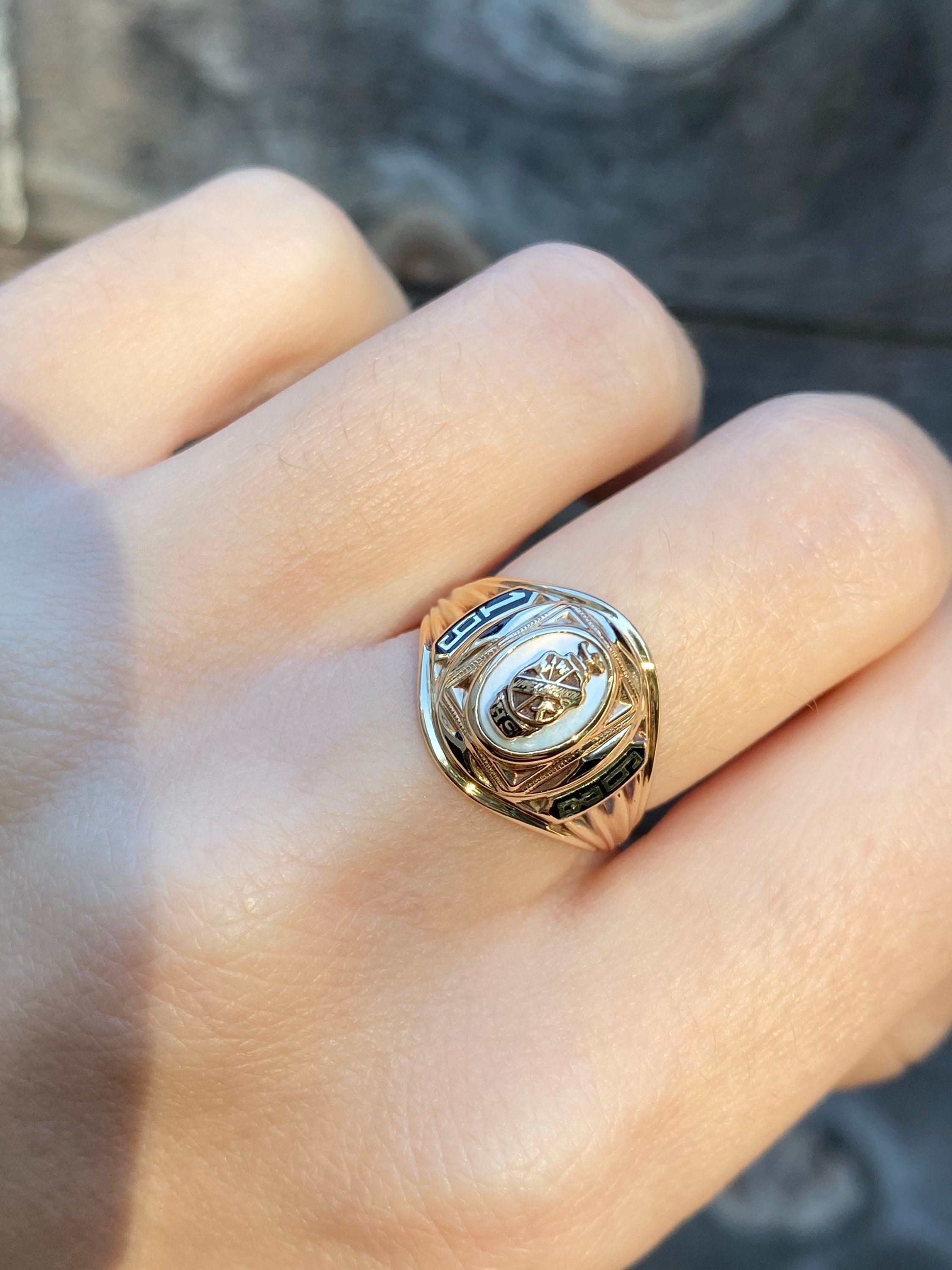 Vintage Solid 10k Yellow Gold 1968 Mother Of Pearl Class Ring Size 5 75 Quality Fine Estate Jewelry Real Genuine Gold Etsy